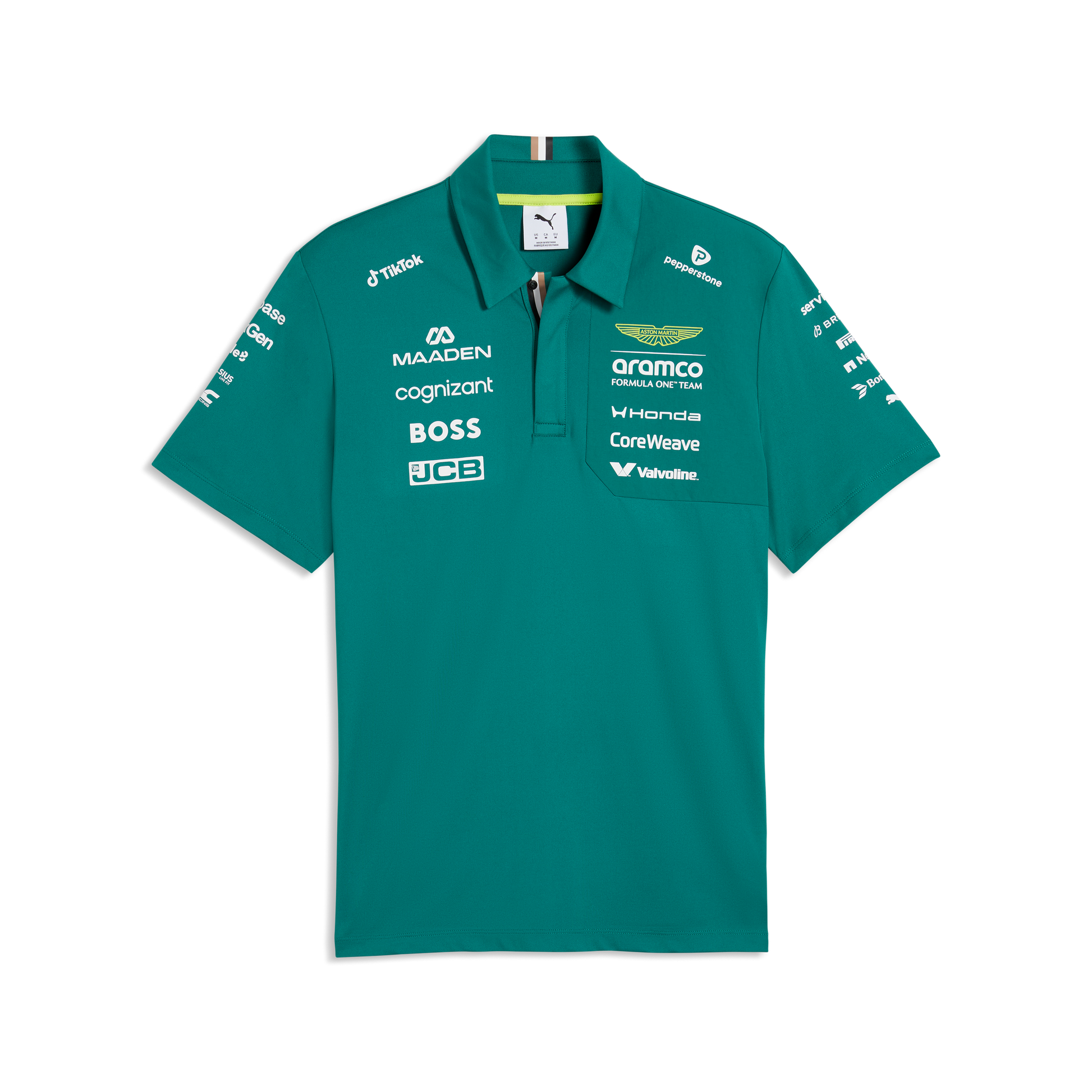 Support the 2026 season in style with the Aston Martin F1 Team 2026 Polo for men in Green Lux. Designed for comfort and a modern fit, this official team polo features a classic collar, breathable fabric, and Aston Martin Formula One Team branding, ideal for race days, casual wear, or motorsport-inspired everyday style.