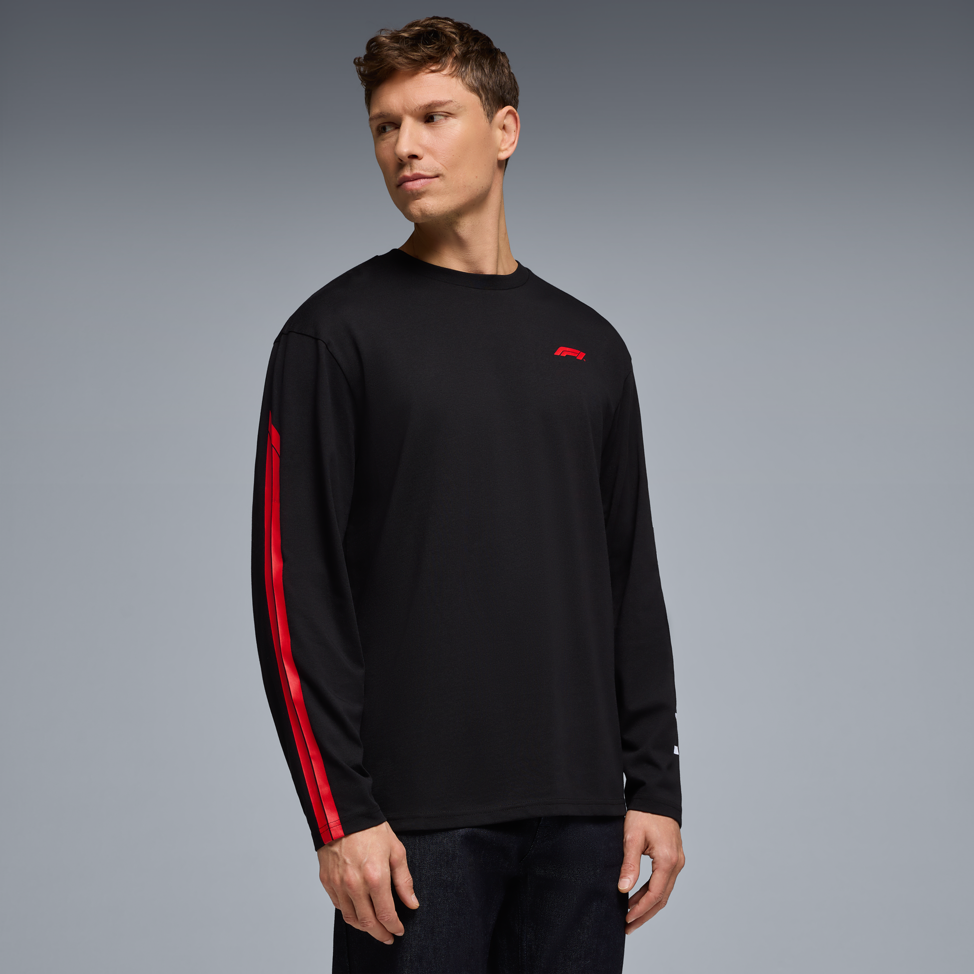 Add sleek motorsport style to your wardrobe with the F1 Racing Line Long Sleeve Tee for men in black. Featuring a classic crew neck, comfortable fit, and official F1 branding, this long-sleeve tee is perfect for race days, casual wear, or layering in everyday Formula 1-inspired style.