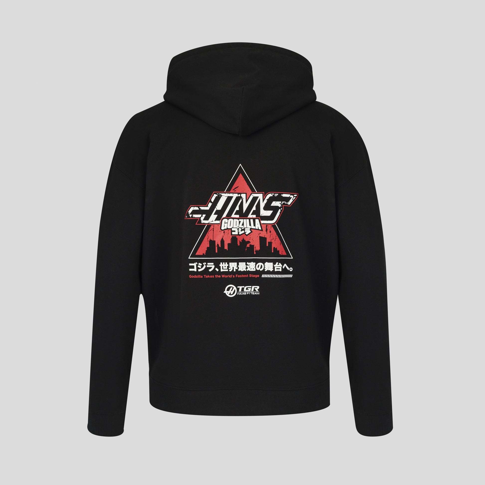 The ultimate piece for the true collector. This Godzilla x Haas Team Hoodie brings the heat with vibrant red-on-black graphics.
