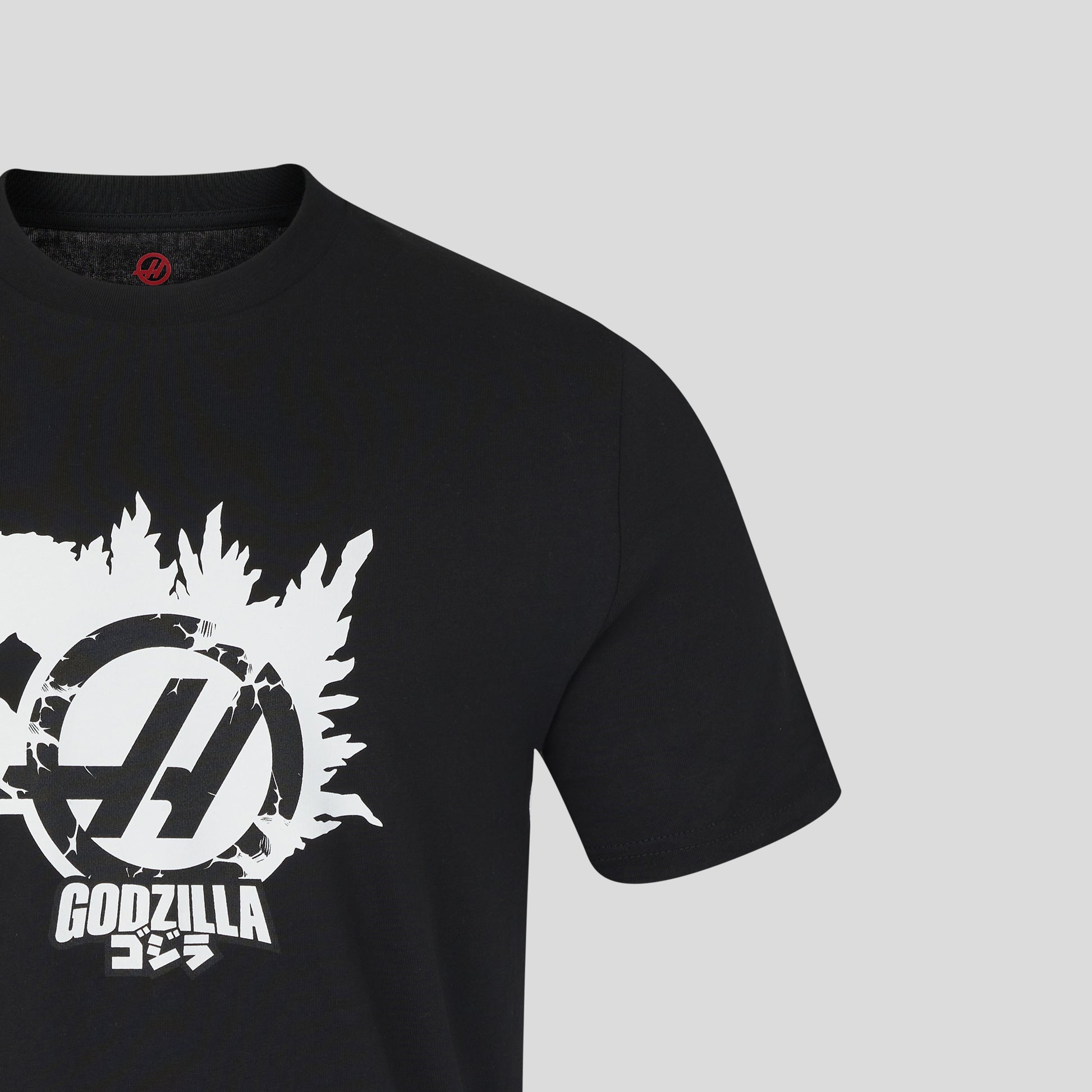 Sleek, powerful, and ready for race day. The Godzilla x Haas Team Black Tee features the exclusive collaboration crest: the Haas "H" circular logo layered over Godzilla’s iconic silhouette.