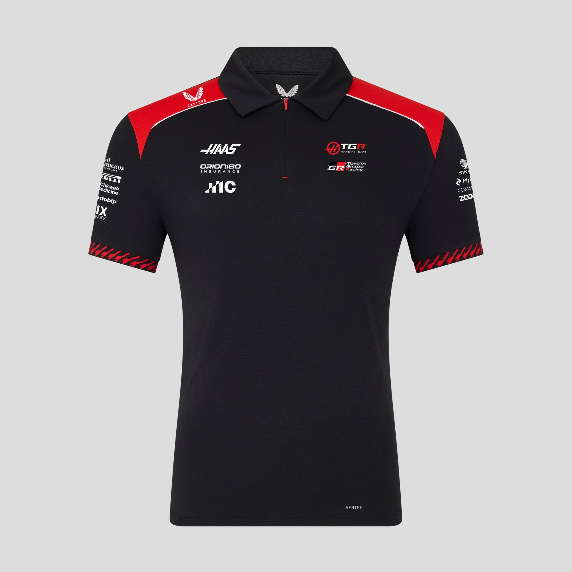 Haas F1 Team 2026 Short Sleeve Polo Mens - Caviar / Flame Scarlet