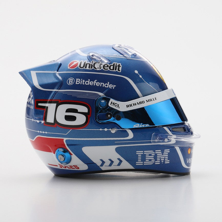 Look Smart 1:5 resin model of the Charles Leclerc Ferrari helmet from the 2025 Miami Grand Prix. Leclerc ran a one-off blue design in this race, to compliment the extra blue touches to his Ferrari. He failed to start the Sprint Race after crashing on his way to the grid in the treacherous weather conditions. The following day he placed seventh in the main race.