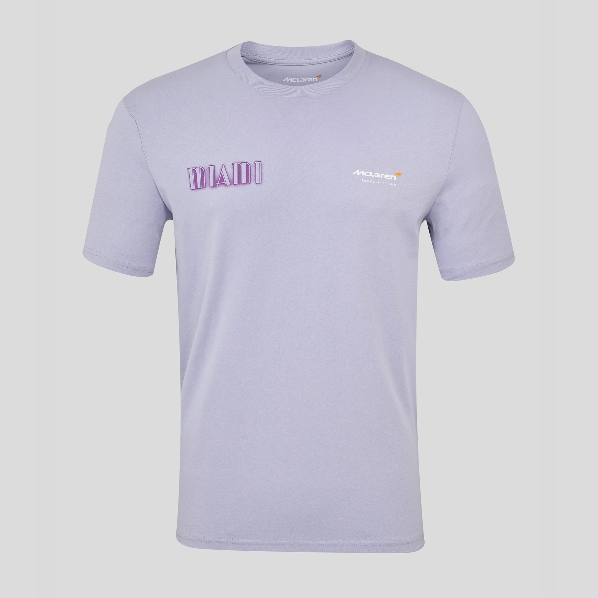Celebrate the new race in Miami as well as Lando Norris's maiden win, with this pastel Graphic Tee in Lavender. Support the top team, McLaren Racing on their journey F1 in this Relaxed Fit Tee depicting a classic Miami view.
