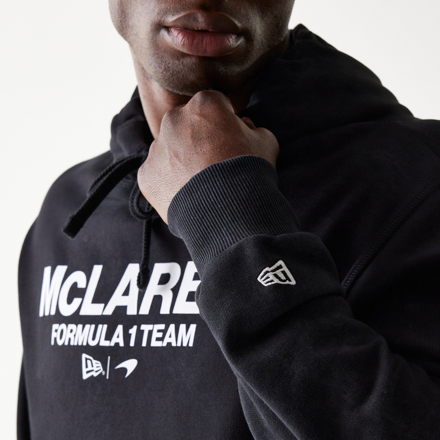 McLaren F1 Team Wordmark hoody. Casual hoodie with graphic detail. Perfect relaxed hoody for the McLaren F1 fan. Available in black or stone.