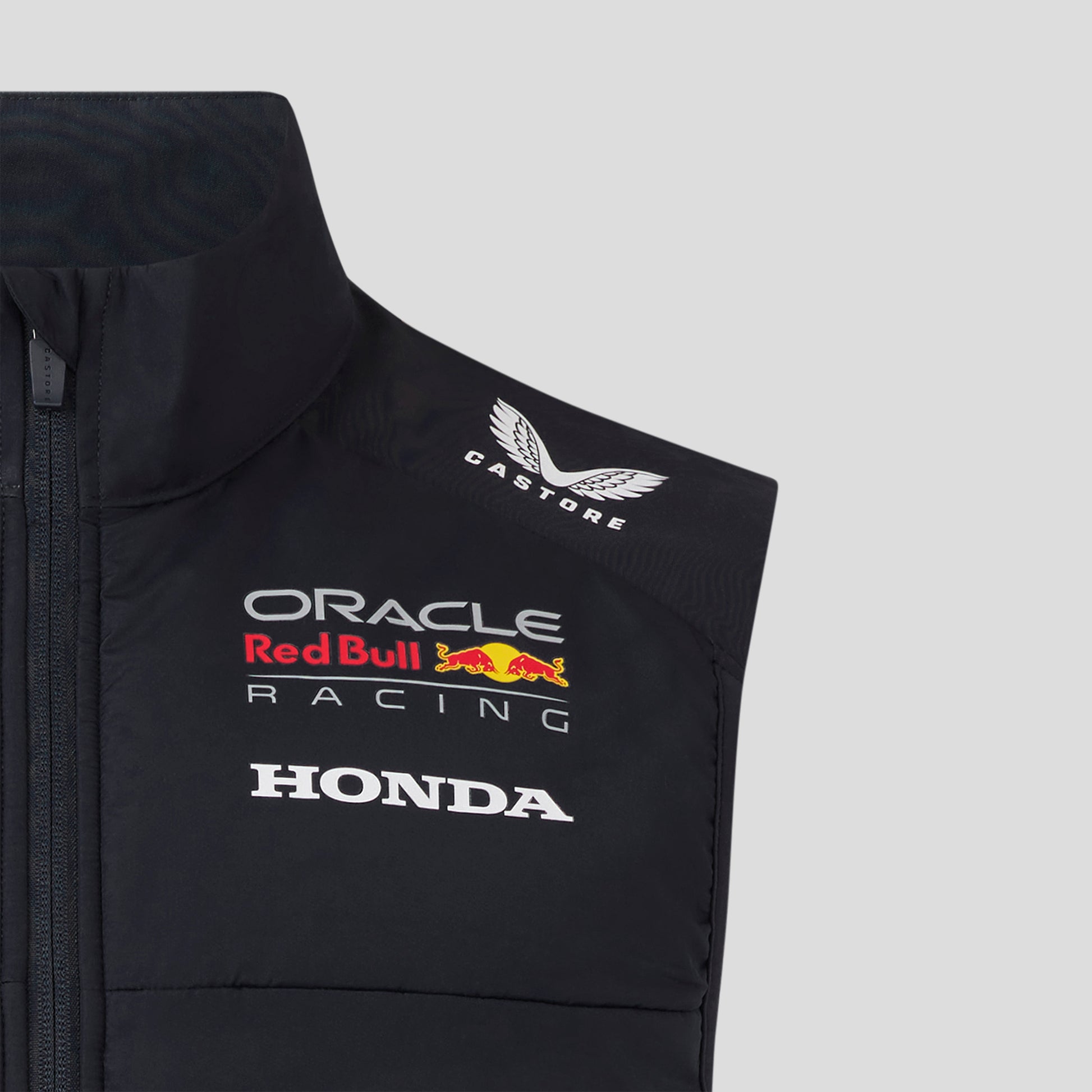 Adults Oracle Red Bull Racing F1 Gilet. Unisex Gilet featuring the ORBR team Logo and team sponsors. The back of the jacket features the iconic charging Bulls logo. In Night Sky