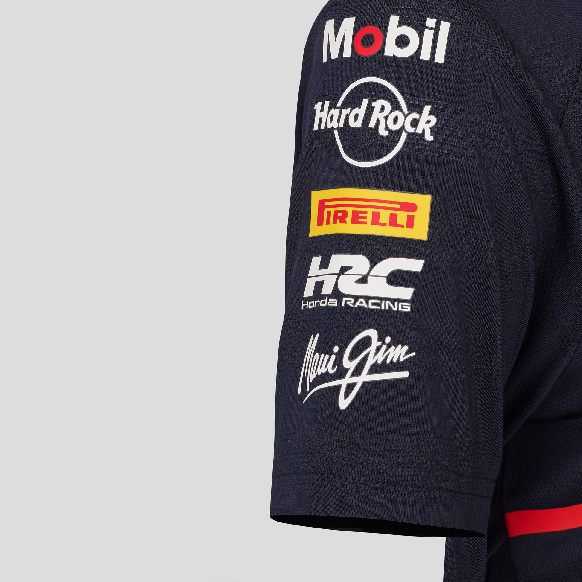 Oracle Red Bull Replica SS Polo Shirt. Womens Polo Shirt the front features the Red Bull team banner, ORBR team Logo and Tag Heuer official sponsor badge. The back of the polo shirt features the iconic charging Bulls logo.