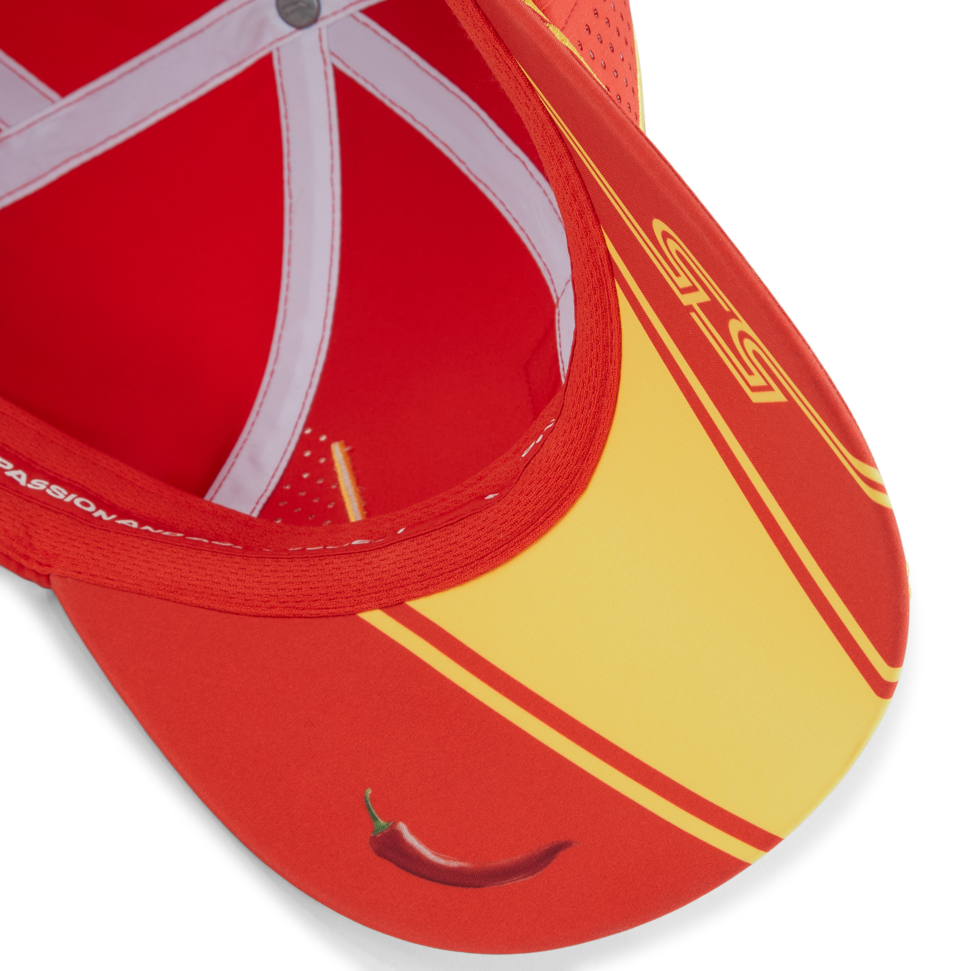 Official Carlos Sainz cap. Features team logo, driver logo and number on the underneath of the peak, which is finished in the native Spaniards national colours. As worn by Carlos during the 2024 Formula 1 season