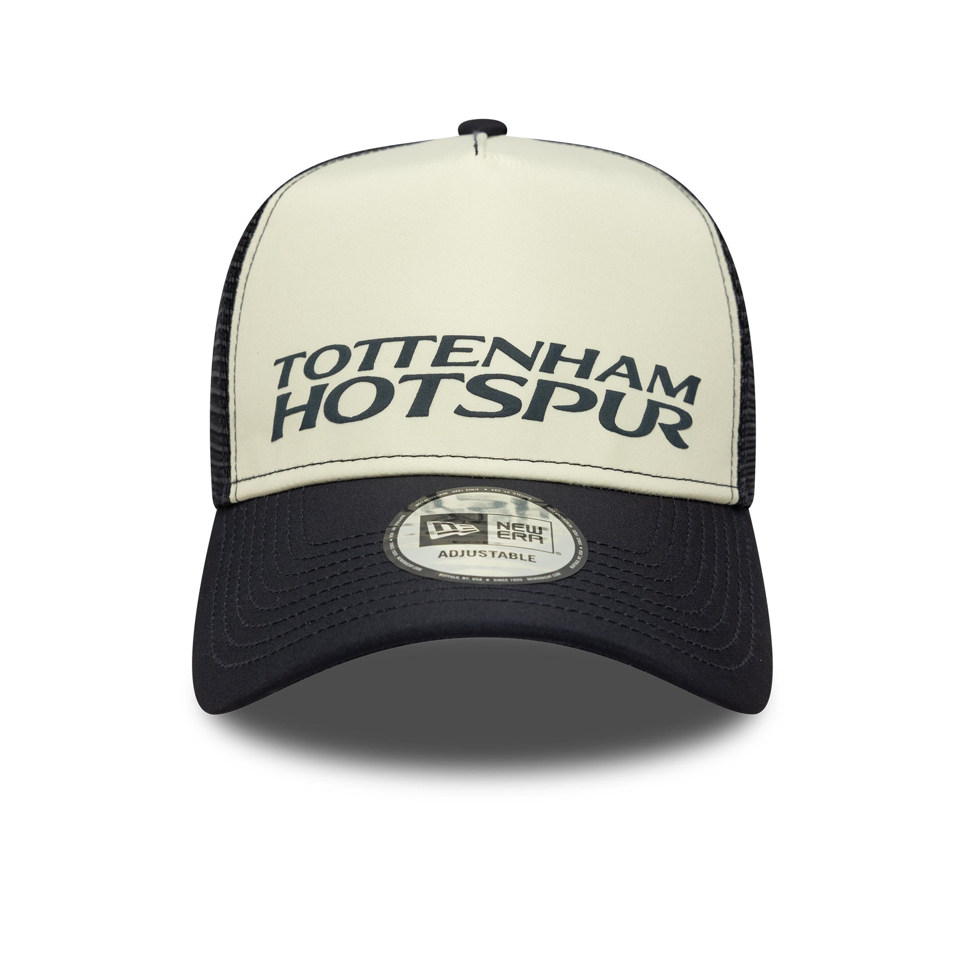 The Tottenham Hotspur Puff Word Mark Trucker Cap Adults - Navy combines classic Spurs style with a bold, modern design.